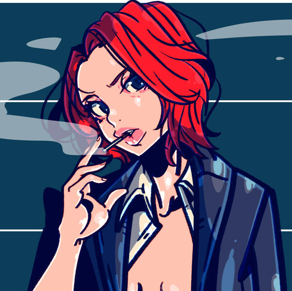 └Smoke rises from a woman's dead lips while a grin mocks her fate ┓